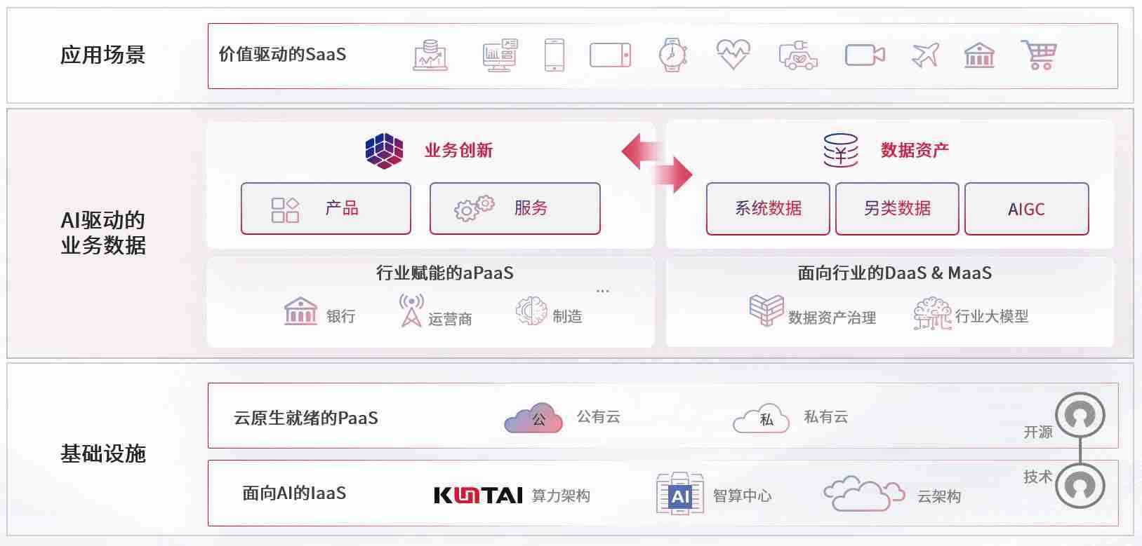 数字时代,,围绕企业数字化转型的关键要素,,,okpay钱包数码开创性的提出数云融合战略和技术体系框架,,,着力在云原生、、、数字原生、、、、AI原生和信创产业上架构产品和服务能力,,,为处在不同数字化转型阶段的快消零售、、汽车、、、金融、、医疗、、政企、、、教育、、、运营商等行业客户提供泛在的敏捷IT能力和融合的数据驱动能力,,构建跨界融合创新的数字业务场景和新业务模式,,助力企业级客户建立面向未来的核心能力和竞争优势,,,,全面推动社会的数字化、、智能化转型升级。。。